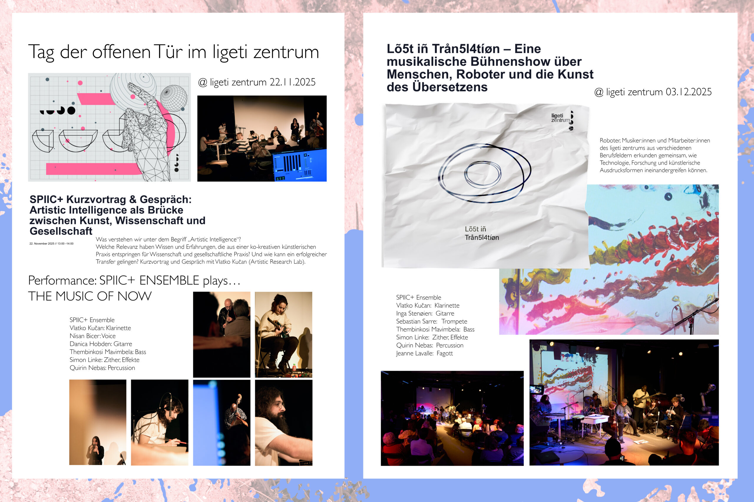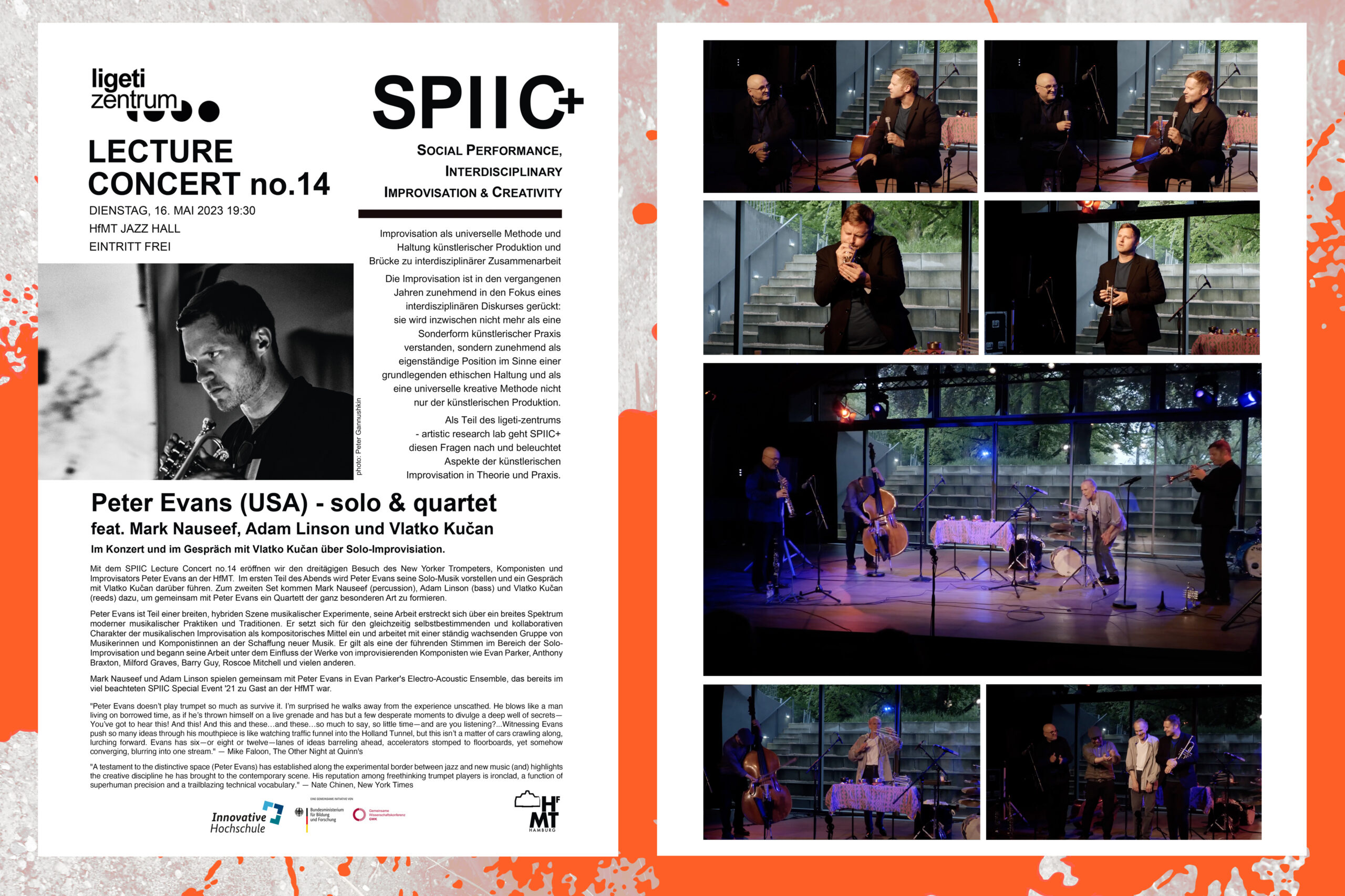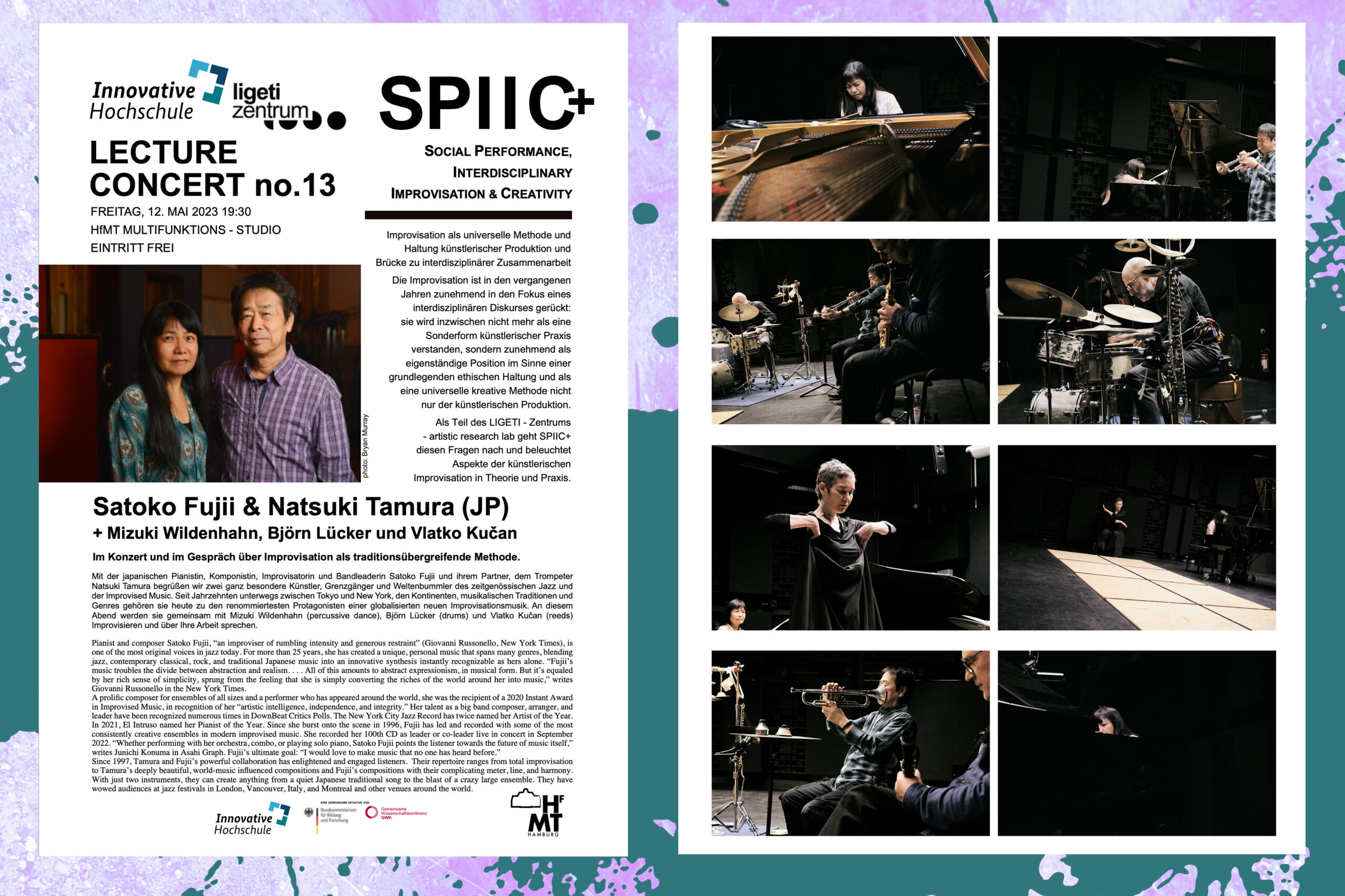 Das 2018 gegründete Projekt SPIIC+ betätigt sich im Feld der Critical Improvisation Studies mit künstlerischer Improvisation als einer grundlegenden ethischen Haltung, sozialen Interaktionsgestaltung und universellen ko-kreativen Methode. Dem aus Studierenden verschiedener Studiengänge zusammengestellten SPIIC+ Ensemble kommt dabei eine zentrale Rolle zu. Im ligeti zentrum baut SPIIC+ auf einem breiten Portfolio öffentlichkeitswirksamer Konzerte und Veranstaltungen auf und setzt diese fort.