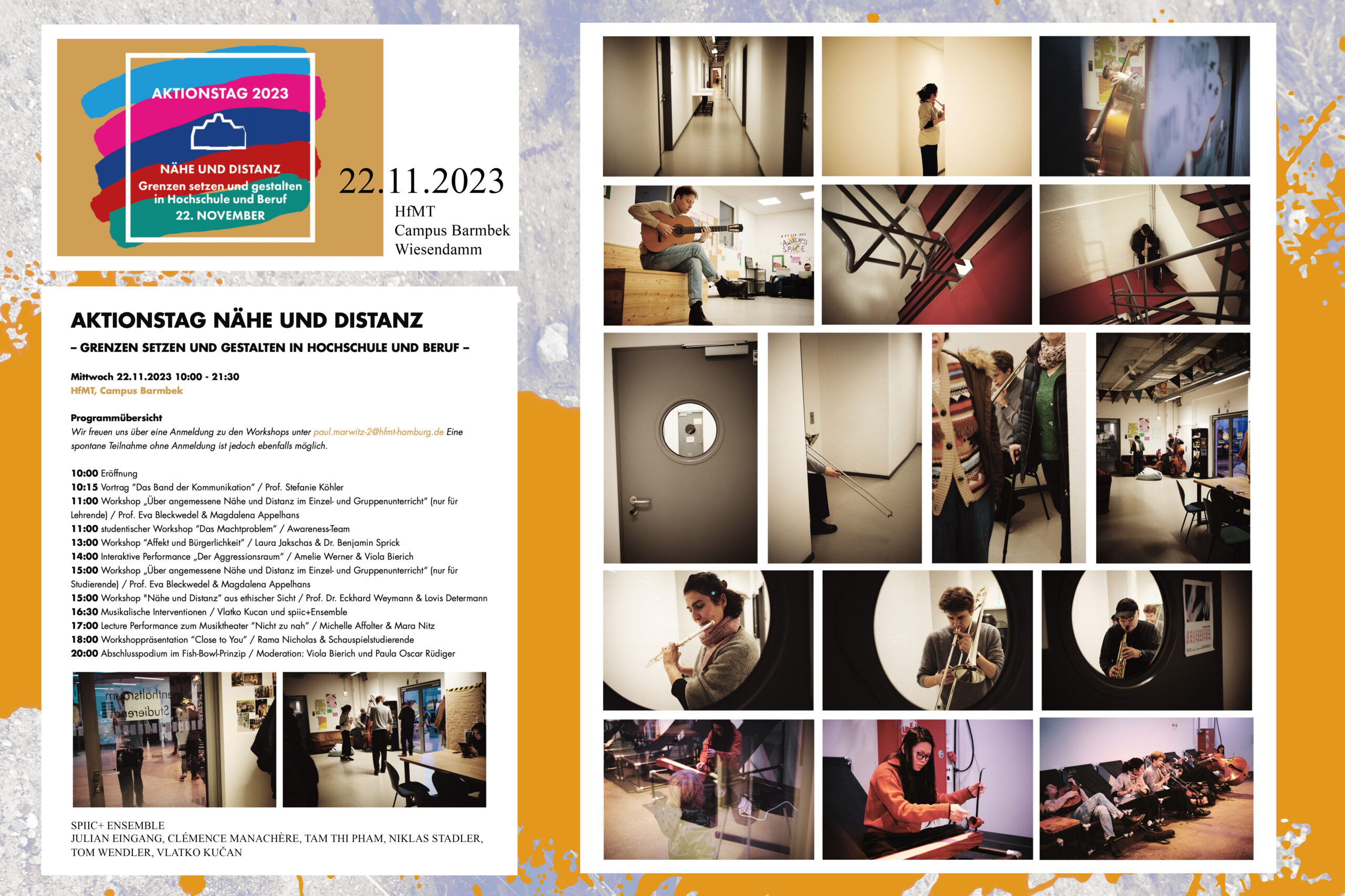 Das SPIIC+ Ensemble ist ein wesentlicher Bestandteil des Projektes. Es besteht aus Studierenden verschiedener Studiengänge der HfMT Hamburg und dient sowohl als ein transdisziplinäres Kollektiv, das junge Musiker:innen und Performer:innen aus verschiedenen Disziplinen, musikalischen Traditionslinien und globalen Kulturkreisen miteinander in einen kreativen Austausch und Prozess bringt. Das ist ein wesentlicher Schritt in der Exploration und Erfahrung von Aspekten individueller, sozialer und künstlerisch-ästhetischer Individualität, Diversität, Solidarität und Vermittlung. Darüber hinaus ist das SPIIC+ Ensemble auch ein konkretes künstlerisch-soziales Instrument, mittels dessen die diversen konkreten SPIIC+ Projekte und Produktionen realisiert werden.